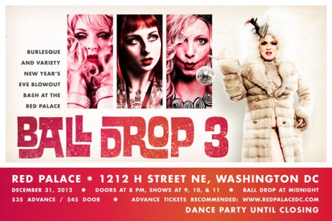 Step right up, ladies & gentlemen, for a New Year’s Eve spectacular at the RED PALACE, the only vaudeville stage, oddity museum, and full bar in the world! This year’s BALL DROP features bodacious burlesque babes, death-defying novelty acts, twisted sideshow oddities, quirky musical surprises, go-go dancing, and an all-night dance party. After sold out shows in 2010 and 2011, BALL DROP returns to the Red Palace for a bigger, brighter show, starring international talent, local favorites, and you!
